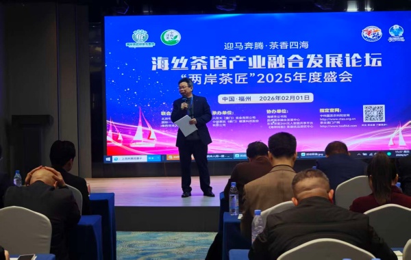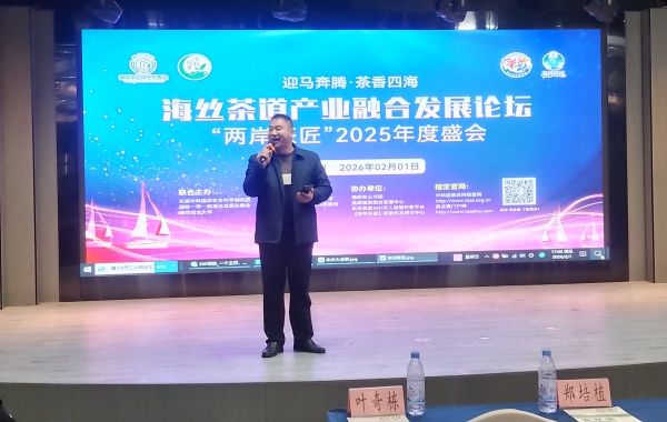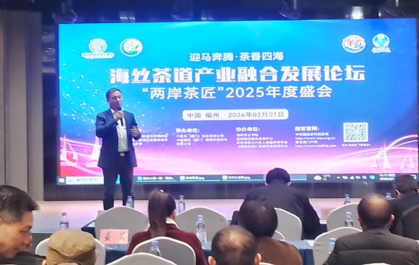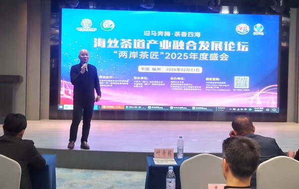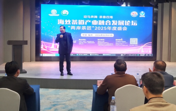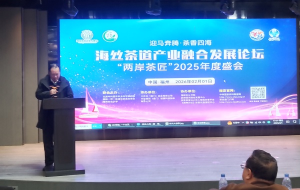 值此,2026年新春来临之际,为进一步推动茶产业标准化、品牌化、国际化进程,打造更多茶产品民族品牌,助力中华茶文化、中国茶品牌加速走向世界。为凝聚茶人之间的交流与合作,共谋未来,深度推进互助共赢,以“迎马奔腾·茶香四海”为主题,海丝茶道产业融合发展论坛暨“两岸茶匠”2025年度盛会”于2026年2月1日下午在福州金仕顿大酒店隆重举行。本次活动汇聚了百余位海峡两岸的茶界专家、 技艺传承人与企业家,共商茶产业发展跨界融合新路径与新机遇。