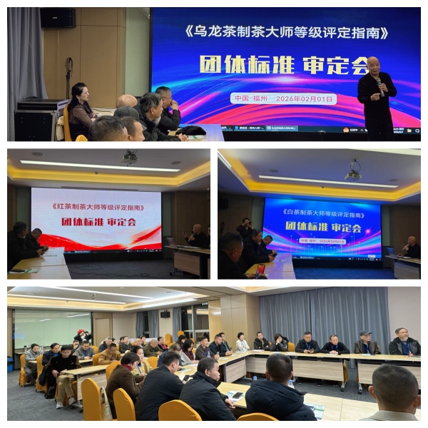 上图为2025年获准立项《乌龙茶制茶大师等级评定指南》、《红茶制茶大师等级评定指南》、《白茶制茶大师等级评定指南》三项团体标准审定会也在此同期举办。