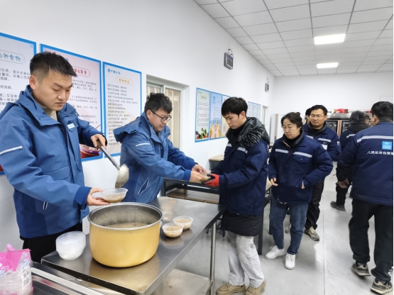 工作人员将一碗碗热气腾腾的粥品递到产业工人手中,以此致敬他们为产业园建设挥洒的汗水与坚守。接过温热的腊八粥,产业工人们脸上满是笑意,一边品尝一边感慨:“寒冬里喝上这碗稠糯的腊八粥,浑身都暖和了。”