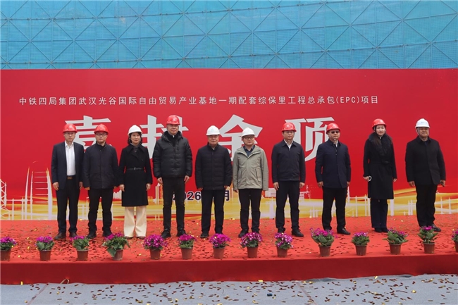 2026年2月4日,中铁四局承建的光谷国际自由贸易产业基地一期配套综保里工程EPC项目2、3号楼主体结构顺利封顶,标志着该项目取得阶段性重大进展,为后续施工奠定坚实基础。