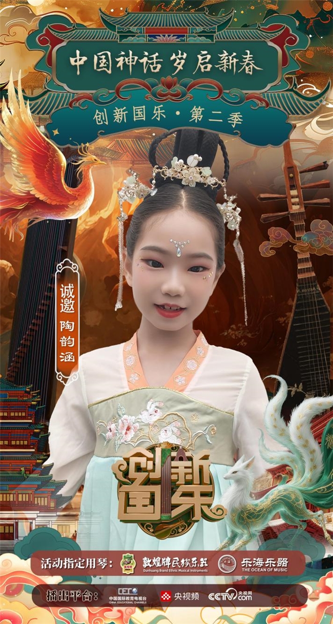 为持续推动中华优秀传统文化的创造性转化与创新性发展,打造具有时代气息的国乐精品,创新国乐第二季“中国神话 岁启新春”大型原创国乐盛典2026年2月8日在北京首钢园隆重启幕!在此,我们特别向学员陶韵涵发出正式演出邀请,期待她以更加成熟的技艺与表现力,与我们共同演绎华夏神话的壮丽诗篇。