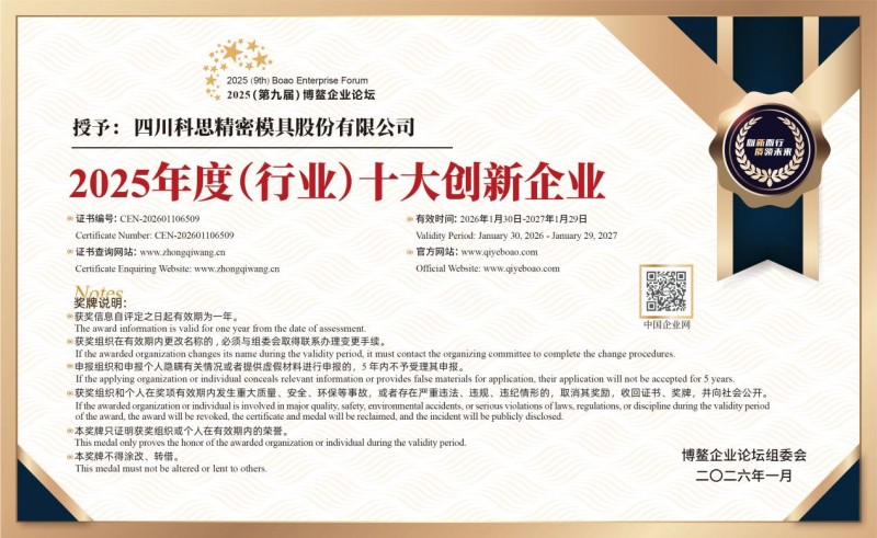 荣誉既是里程碑,更是新征程的起点。此次博鳌企业论坛的获奖是对过去努力的认可,更是对未来发展的鞭策。公司将以此为动力,继续深耕模具行业,坚持创新突破,不断提升核心竞争力,力争在引领行业高质量发展中发挥更大作用。同时,科思精密将牢记使命担当,积极践行社会责任,在技术革新、行业推动、公益事业等方面展现新作为,努力将企业发展融入国家战略,以扎实的“模具力量”助推社会经济发展,奋力书写企业高质量发展与履行社会责任协同共进的新篇章。