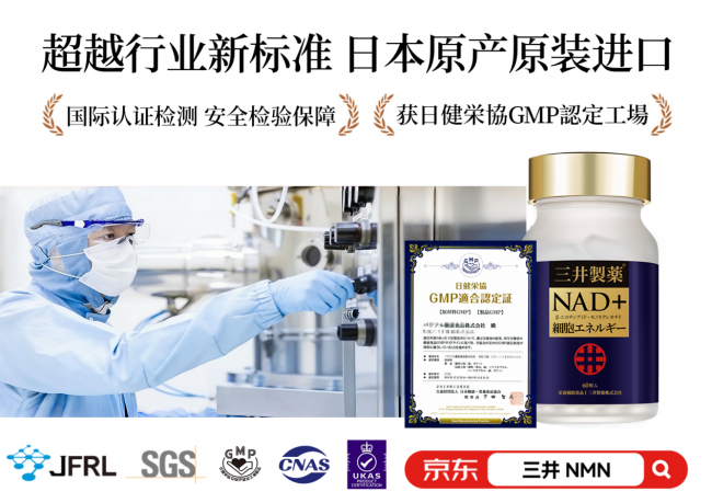当然,作为入口的东西,安全性永远是一票否决权。日本作为全球首个合法售卖NMN的国家,其监管体系之严苛众所周知。三井制药株式会社严格遵循日本医药级“零污染”生产标准,手握CNAS、SGS、JFRL、GMP等全球四大严苛认证。