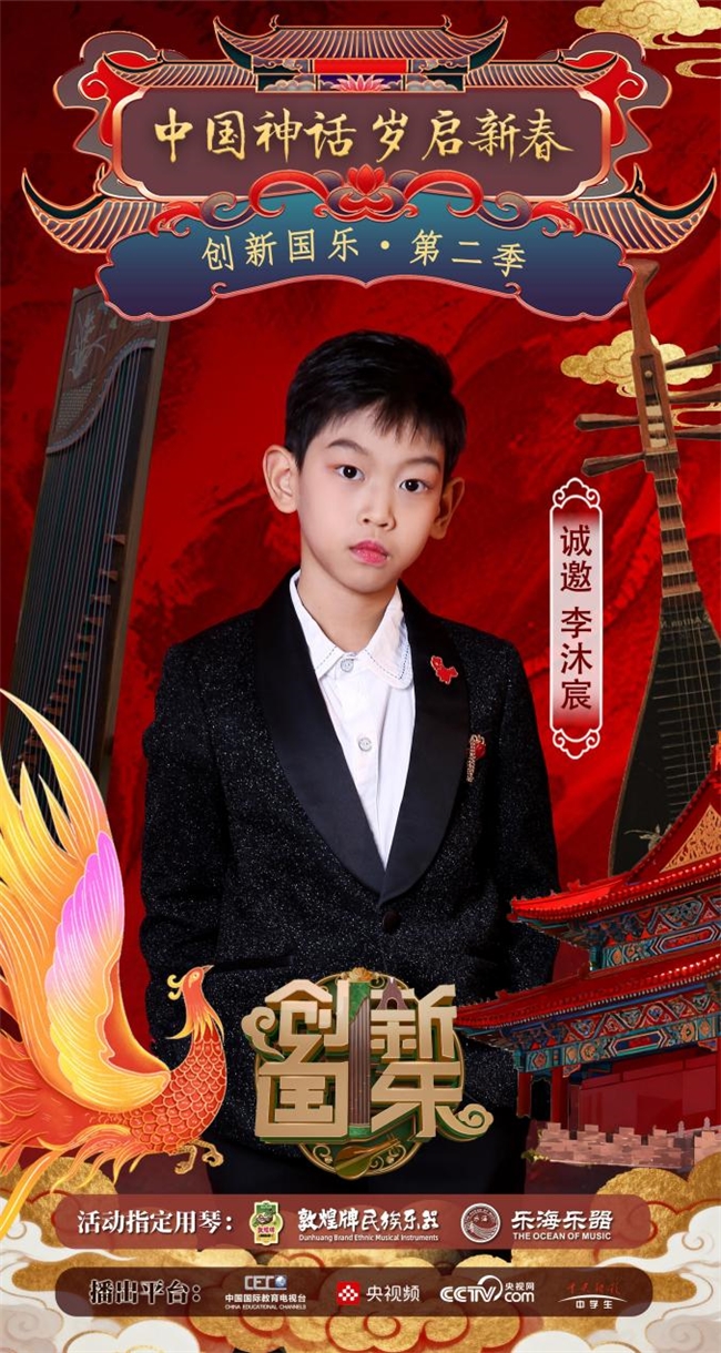 为持续推动中华优秀传统文化的创造性转化与创新性发展,打造具有时代气息的国乐精品,创新国乐第二季“中国神话 岁启新春”大型原创国乐盛典2026年2月8日在北京首钢园隆重启幕!在此,我们特别向学员李沐宸发出正式演出邀请,期待他以更加成熟的技艺与表现力,与我们共同演绎华夏神话的壮丽诗篇。