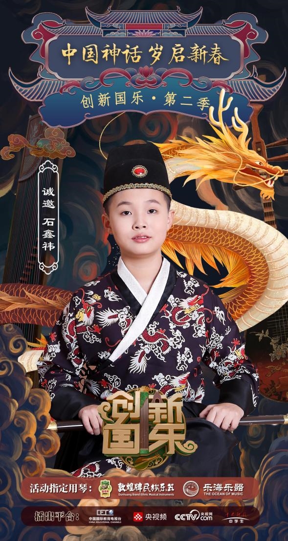 为持续推动中华优秀传统文化的创造性转化与创新性发展,打造具有时代气息的国乐精品,创新国乐第二季“中国神话 岁启新春”大型原创国乐盛典2026年2月8日在北京首钢园隆重启幕!在此,我们特别向学员石鑫祎发出正式演出邀请,期待他以更加成熟的技艺与表现力,与我们共同演绎华夏神话的壮丽诗篇。