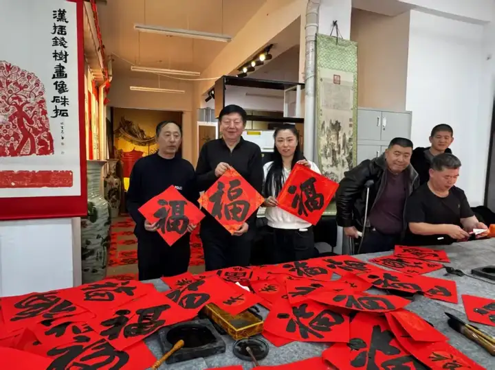 2月4日下午,民盟鸡西市委会送文化小分队携手市残联、城子河区委区政府,在城子河区工会文化站开展为残疾人写春联送福字活动。民盟鸡西市委会主委孟庆福,市残联理事长朱爽,城子河区委副书记李利刚参加活动。