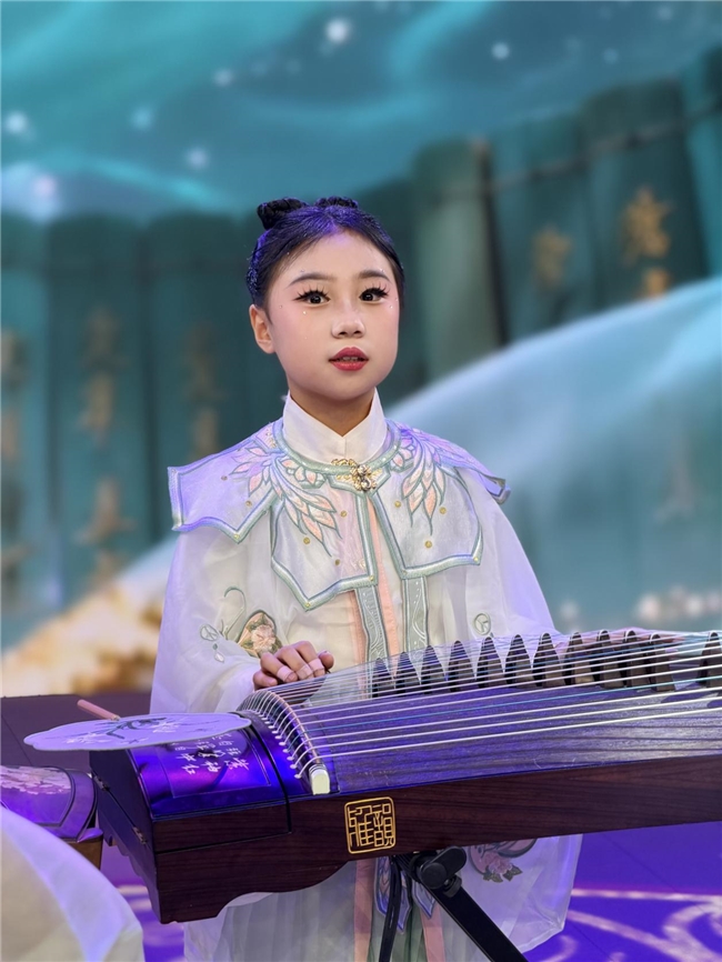 在传统文化传承方面,她同样表现出众:2024年,在“赢在诗词”青少年诗词大会中,从市级展示一路突围至省级舞台,先后斩获一年组市级一等奖、省级银奖,尽显深厚的文化底蕴。2026年,她登上“未来星”全国少儿春节联欢晚会的舞台,以专注的演绎、饱满的热情呈现了一场精彩表演,充分展现出勇敢自信的少年风采,经组委会评定,特授予“优秀小演员”荣誉称号,并获颁器乐类社会实践证书。从书桌到舞台,从笔墨到琴弦,肖美杉用全面的发展诠释着成长的无限可能,成为同龄人中的榜样。