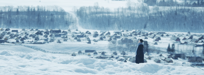 除了故事以外,《一秒》的画面美如诗境,堪比经典电影《情书》。极致的视觉诗意,治愈的终极象征:无论是《情书》中渡边博子仰望的漫天飞雪,还是《一秒》中北山村被雪覆盖的静谧远景,构图都如诗如画,雪抹去了杂乱,让画面和情绪都高度纯净、集中。