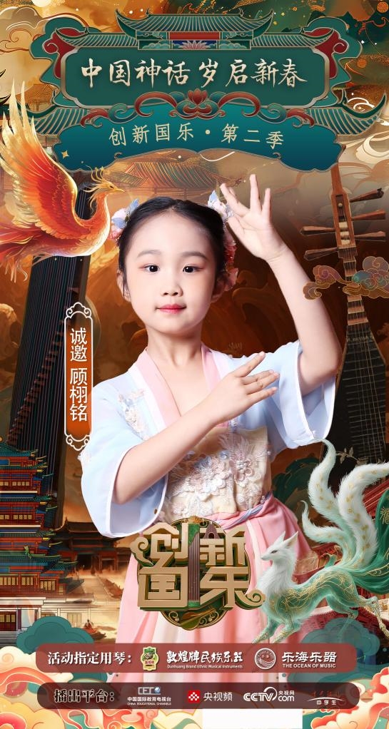 为持续推动中华优秀传统文化的创造性转化与创新性发展,打造具有时代气息的国乐精品,创新国乐第二季“中国神话 岁启新春”大型原创国乐盛典2026年2月8日在北京首钢园隆重启幕!在此,我们特别向学员顾栩铭发出正式演出邀请,期待她以更加成熟的技艺与表现力,与我们共同演绎华夏神话的壮丽诗篇。