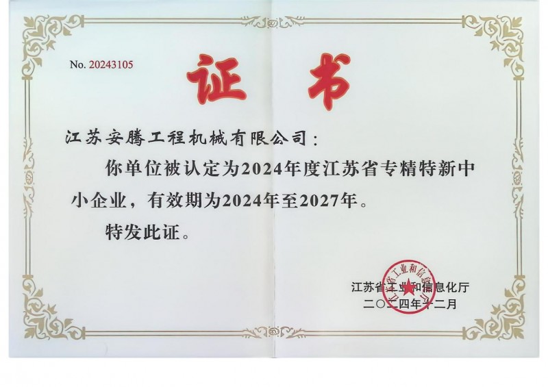 荣获“江苏省专精特新中小企业”认定,是对江苏安腾过往坚持的肯定,更是其未来发展的新起点。江苏安腾将继续在液压桩基设备这一专业领域深耕,以更精密的管理、更特色的产品、更持续的创新,为中国装备制造业的发展贡献坚实力量。