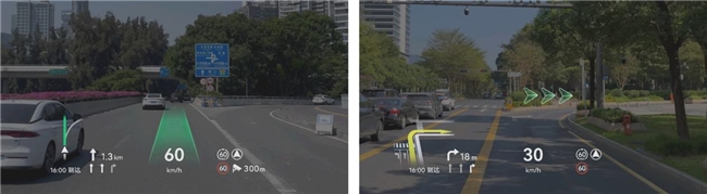 问界M9本次还新增了AR-HUD车道指引功能,开启AR车道指引后,人驾状态下导航开启时,AR-HUD在道路中显示AR引导光毯,路口时显示AR箭头指引。同时,问界M9还新增了AR-HUD风险预警功能,在夜间光线和视野较差的场景下,对AR-HUD视野范围内的行人和非机动车显示告警提示,辅助驾驶员进行风险判断。