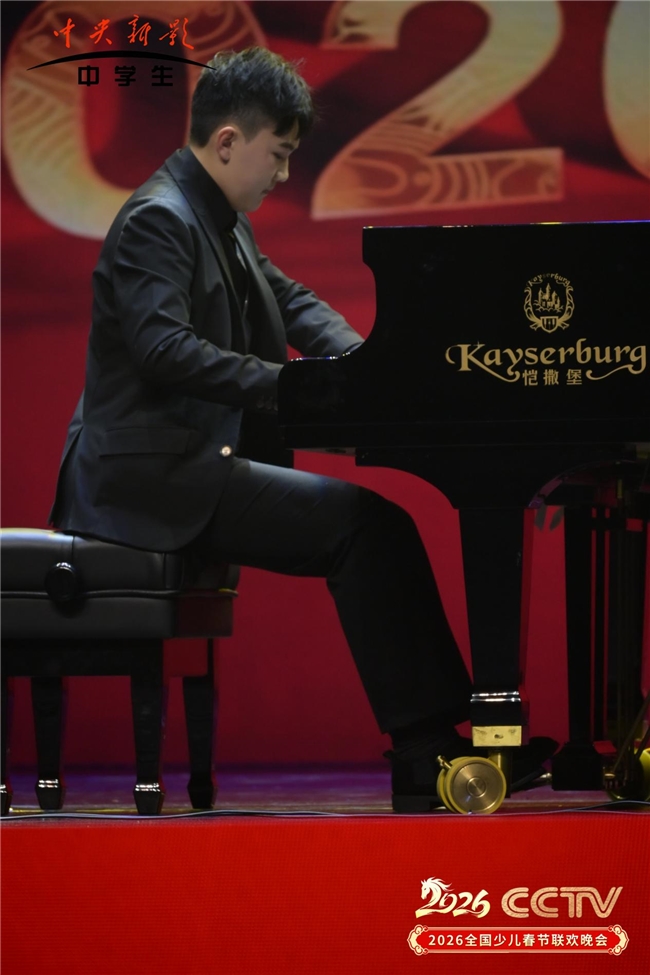 珠江口畔,日月同辉;琴音悠扬,共贺新春。2月3日,2026中央新影中学生频道“骏马踏星辰,童梦耀新春”全国少儿春节联欢晚会在珠海日月贝大剧院圆满完成录制。这座中国唯一建在海岛上的艺术殿堂,在此刻见证了来自全国各地的音乐少年用艺术致敬新春的喜悦。其中,来自香港的少年钢琴家廖偲楷受邀作为主会场嘉宾登台,以一曲融合《春节序曲》与莫扎特《爵士幻想曲》的钢琴独奏,为晚会注入跨越古今、联结粤港澳的新春暖流。