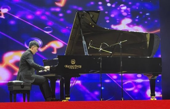 当晚,聚光灯照亮舞台中央,廖偲楷身着礼服端坐琴前,神情从容而专注。指尖轻落的瞬间,《春节序曲》的欢快旋律便洒满整个剧院,明快的节奏、喜庆的曲调瞬间点燃现场氛围,让在场观众提前置身于新春团圆的热闹场景中;随后,旋律自然过渡,莫扎特《爵士幻想曲》的典雅质感缓缓流淌……既保留了新春喜庆旋律,还原了国人心中熟悉的年味底色,又融入了古典作品的典雅与爵士节奏的灵动,巧妙打造出“古今对话、中西交融”的艺术特色,让传统年味碰撞出别样火花。
