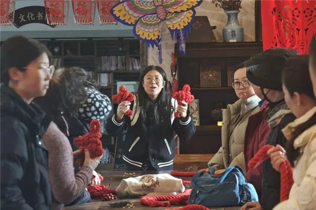 居民们热情高涨、跃跃欲试,认真聆听、仔细观摩,遇到疑问主动虚心请教,一步步跟着老师的步骤动手编织,还不时相互交流技巧、分享心得,充分发挥创意,将一根根大红丝线编织成独具特色的中国结作品。活动现场暖意融融,每一件成品都承载着大家对生活的美好期许。