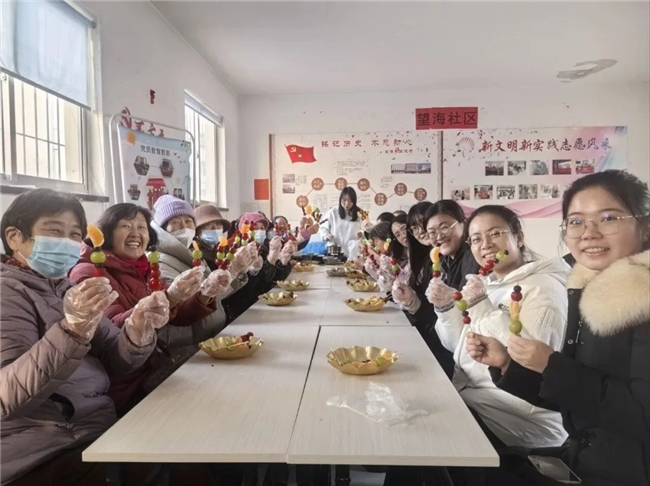 望海社区以“甜葫趣猜 邻里同乐”为主题,开展手工制作糖葫芦与“你比我猜”互动游戏活动。活动现场,社区提前备齐山楂、蓝莓、葡萄、圣女果等新鲜水果,以及糖、竹签、锅具等全套制作材料与工具。