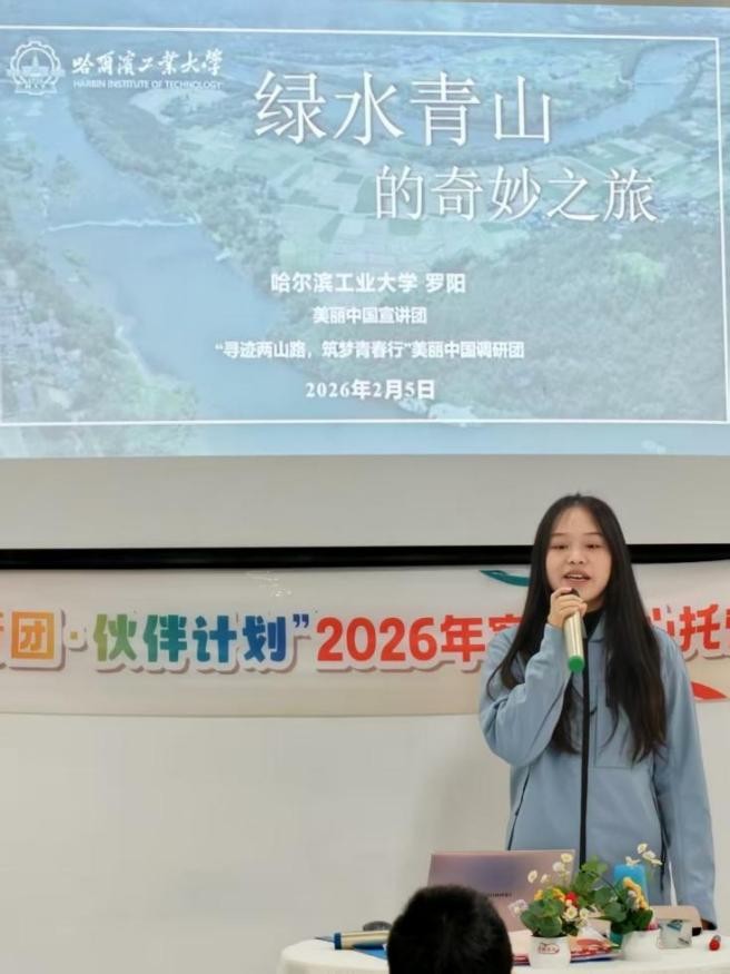 2 月 5 日,长沙市望城区同心园社区 “共青团・伙伴计划” 2026年寒假爱心托管班内暖意融融,一场别开生面的环保科普课点燃了孩子们的探索热情。来自哈尔滨工业大学环境学院的博士研究生罗阳,以《绿水青山的奇妙之旅》为题,用生动有趣的 “青年话语” 为新就业群体未成年子女们送上了一堂沉浸式环保教育课。