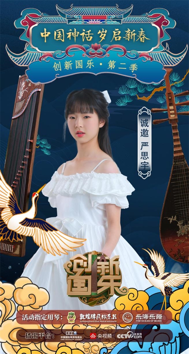 为持续推动中华优秀传统文化的创造性转化与创新性发展,打造具有时代气息的国乐精品,创新国乐第二季“中国神话 岁启新春”大型原创国乐盛典2026年2月8日在北京首钢园隆重启幕!在此,我们特别向学员严思宇发出正式演出邀请,期待她以更加成熟的技艺与表现力,与我们共同演绎华夏神话的壮丽诗篇。