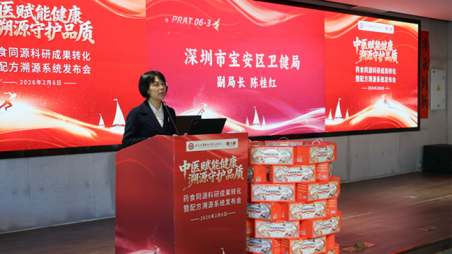 宝安区卫健局陈桂红副局长表示,此次发布的成果转化产品,依托医院扎实的科研基础和临床经验,充分体现了中医理论的指导与现代技术的融合,“配方溯源系统”为中医药产品的规范化、标准化、现代化发展提供了积极探索。同时,寄语医院以此次发布会为新的起点,加快推动中医药科技创新与成果转化,一是坚持守正创新,继续深耕药食同源等领域的基础研究与临床实践,产出更多高质量的科研成果;二是强化转化应用,进一步完善产学研用合作机制,让更多中医药创新成果惠及百姓健康,助力健康产业发展;三是确保安全规范,充分发挥溯源系统等技术手段的作用,严把产品质量关,守住安全底线,树立行业标杆;四是加强宣传推广,普及药食同源健康知识,引导公众科学认知、合理使用,提升中医药健康文化的影响力。