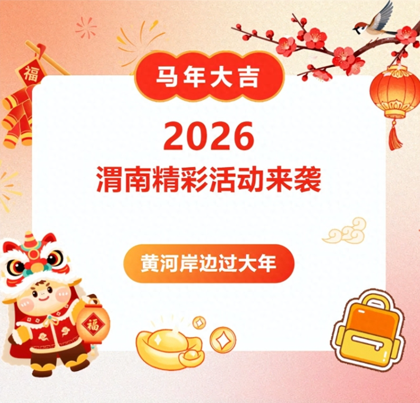 瑞马奔腾启新程,浓浓年味满渭南。2026年的春节,注定是一场充满激情与欢乐的盛会。无论你是土生土长的渭南人,还是慕名而来的远方客,这座城市都已敞开怀抱,用最饱满的热情、最地道的民俗,恭迎你的到来。让我们相聚华山脚下,共赏黄河风情,在震天的锣鼓和欢腾的社火中,共同度过一个红红火火、龙马精神的马年春节!
