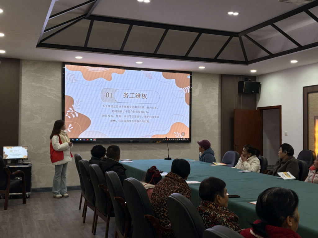 核心宣讲环节,何思璇紧扣活动主题,围绕务工维权、邻里纠纷、征地拆迁三大核心板块,简要介绍了相关法律依据与维权关键要点,既保证了内容的权威性,又兼顾了村民的理解程度,让大家能快速抓住重点、学以致用。