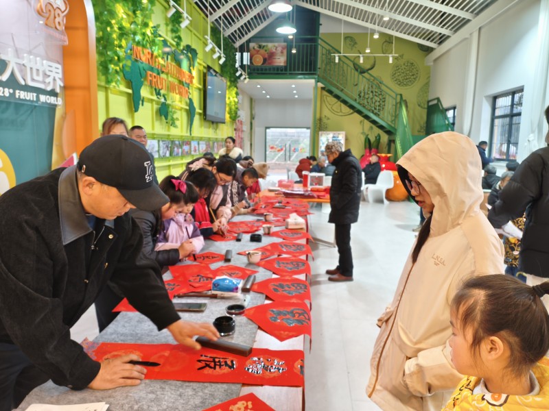 春节将至,年味渐浓。为弘扬公益精神、传递新春温情,2月9日上午,铜官街道中山村党总支联合村公益书法屋,在北纬28度水果大世界举办“益起同行献爱心·书法义卖暖中山”主题公益活动。党员干部、村民代表及公益书法班学员齐聚一堂,以笔墨传情、用爱心聚力,奏响基层公益与文化传承的和谐乐章。活动现场秩序井然、暖意融融。