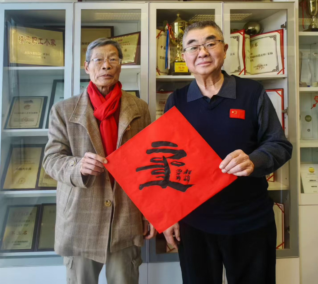 李丹妮(左)、张宗银将军写福、王明焕政委(右)