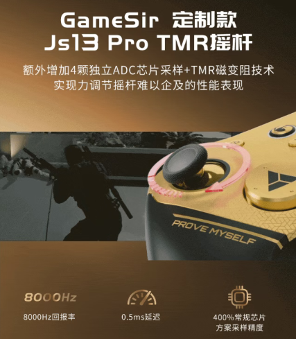 定制款Js13 Pro TMR摇杆,额外搭载4颗独立ADC芯片采样,并融入TMR磁变阻技术,达到400%常规芯片方案采样精度,更实现了8-12bit可调、最高4096级的精细分辨率。
