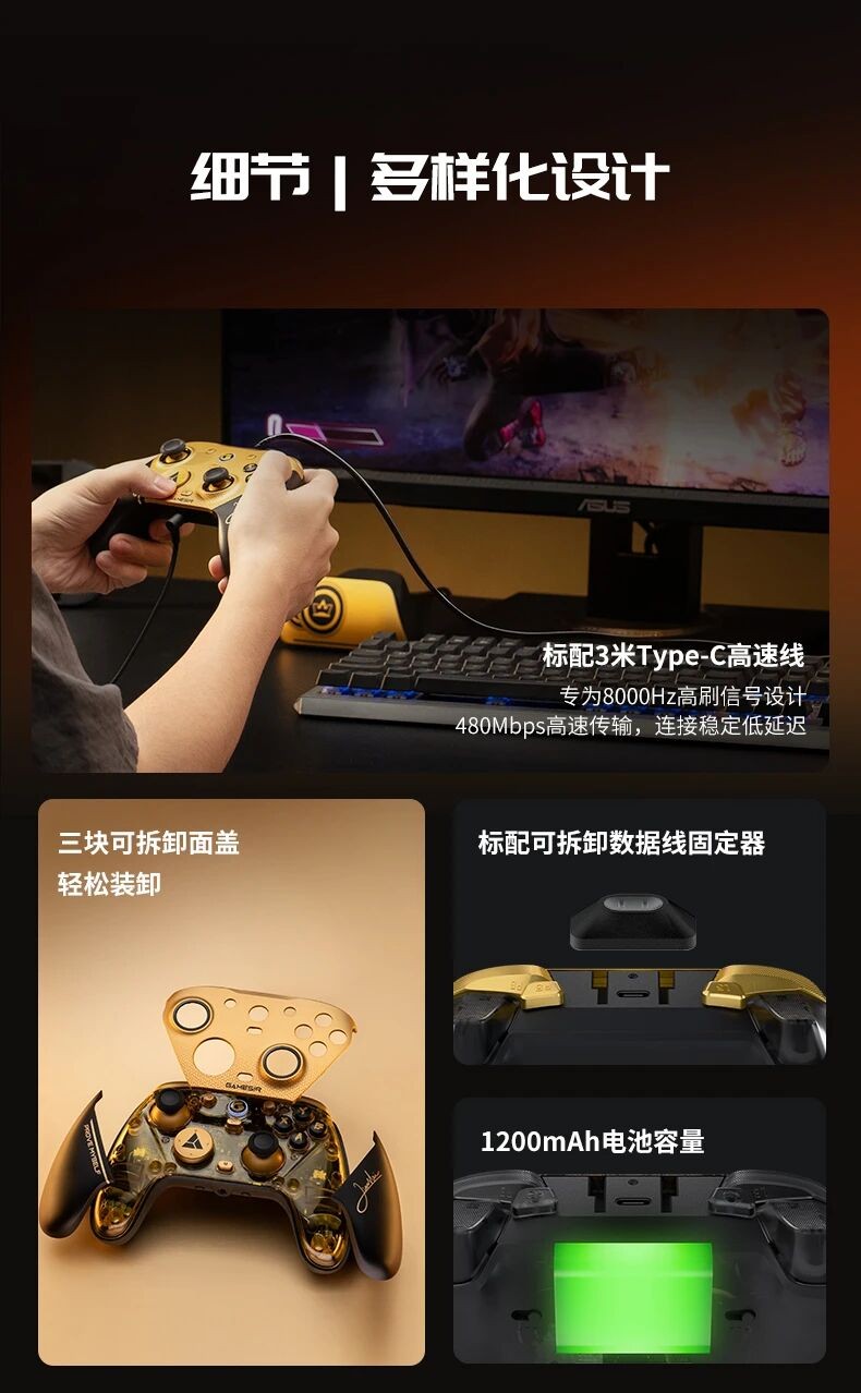 盖世小鸡表示,竞技手柄的核心不在于堆砌功能,而是把算力聚焦在操控的根本——手柄整体的操控精度、延迟与响应速度,并特邀“小孩”曾卓君再度精调,只为打造最纯粹、最极致的竞技体验。
