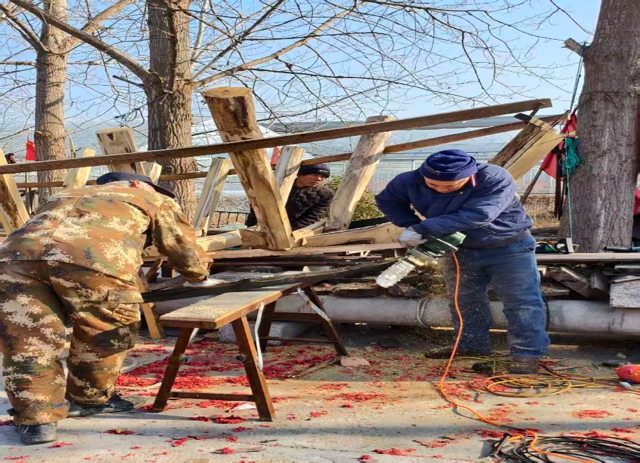 图为工匠师傅们在截锯木材 路景皓供图