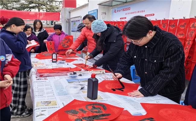 活动现场暖意融融、人气鼎沸,处处洋溢着欢乐喜庆的节日气息。书法爱好者们齐聚一堂,铺红纸、润浓墨、运笔锋,行云流水、落笔生辉。一幅幅春联对仗工整、气韵生动,一张张福字饱满大气、意蕴吉祥,既有“马跃前程开盛世,春归益门纳安康”的专属吉语,也有阖家团圆、国泰民安的美好祈愿,墨香与年味交织,文韵与民心相融。