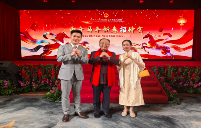 2月6日,中国驻马来西亚大使馆举办丙午马年新春招待会。欧阳玉靖大使,马来西亚副总理法迪拉、国会下议院议长佐哈里等马政府官员、政党代表、各界友人,多国驻马使节,在马华侨华人、中资企业和中国留学生代表等千余人欢聚一堂,共迎新春。