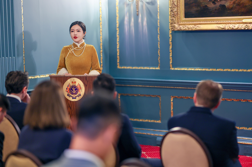 2024年11月15日,作为联合国世界投资论坛特邀中国优秀女性代表,显灵老师出席在英国伦敦举办的中英经贸论坛,受到英国长公主安妮殿下接见并同台交流,被授予“中英经贸交流大使”荣誉称号。为以更高标准参与国际交流,会前显灵老师专门邀请了凯特王妃的礼仪导师 Laura Windsor 研习英国皇家礼仪,展现中国文化使者的良好风范。