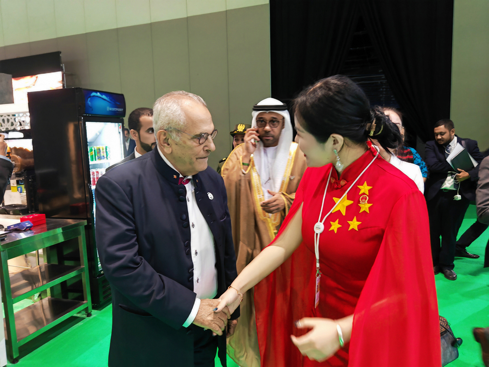(图为显灵老师与阿联酋首都阿布扎比经济发展部主任艾哈迈德-贾西姆-阿尔扎比阁下)