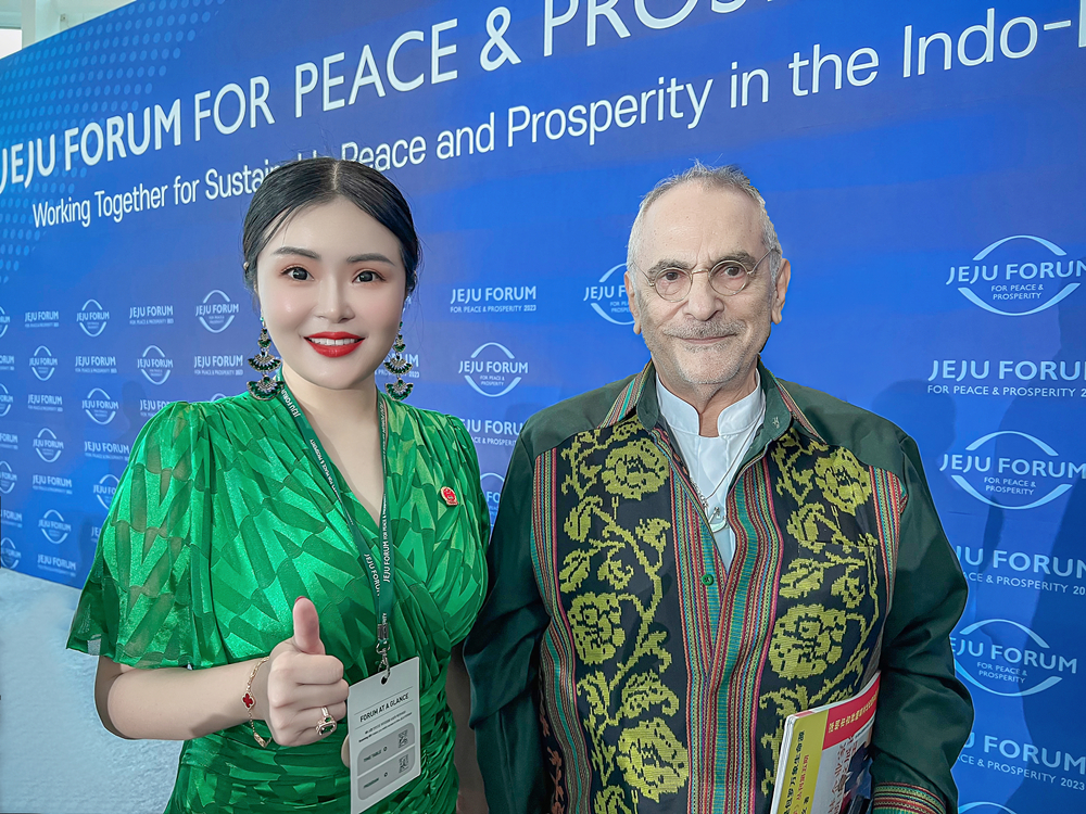 2023年5月底,显灵老师受韩国官方邀请,出席2023济州岛国际论坛。论坛以全球和平发展与繁荣为主题,与会嘉宾包括联合国前秘书长潘基文、东帝汶总统何塞·拉莫斯·奥尔塔、澳大利亚前总理保罗·基廷、韩国国会议长金振杓、韩国国务总理韩德洙、菲律宾众议院议长马丁·罗米尔德斯等各国政要。