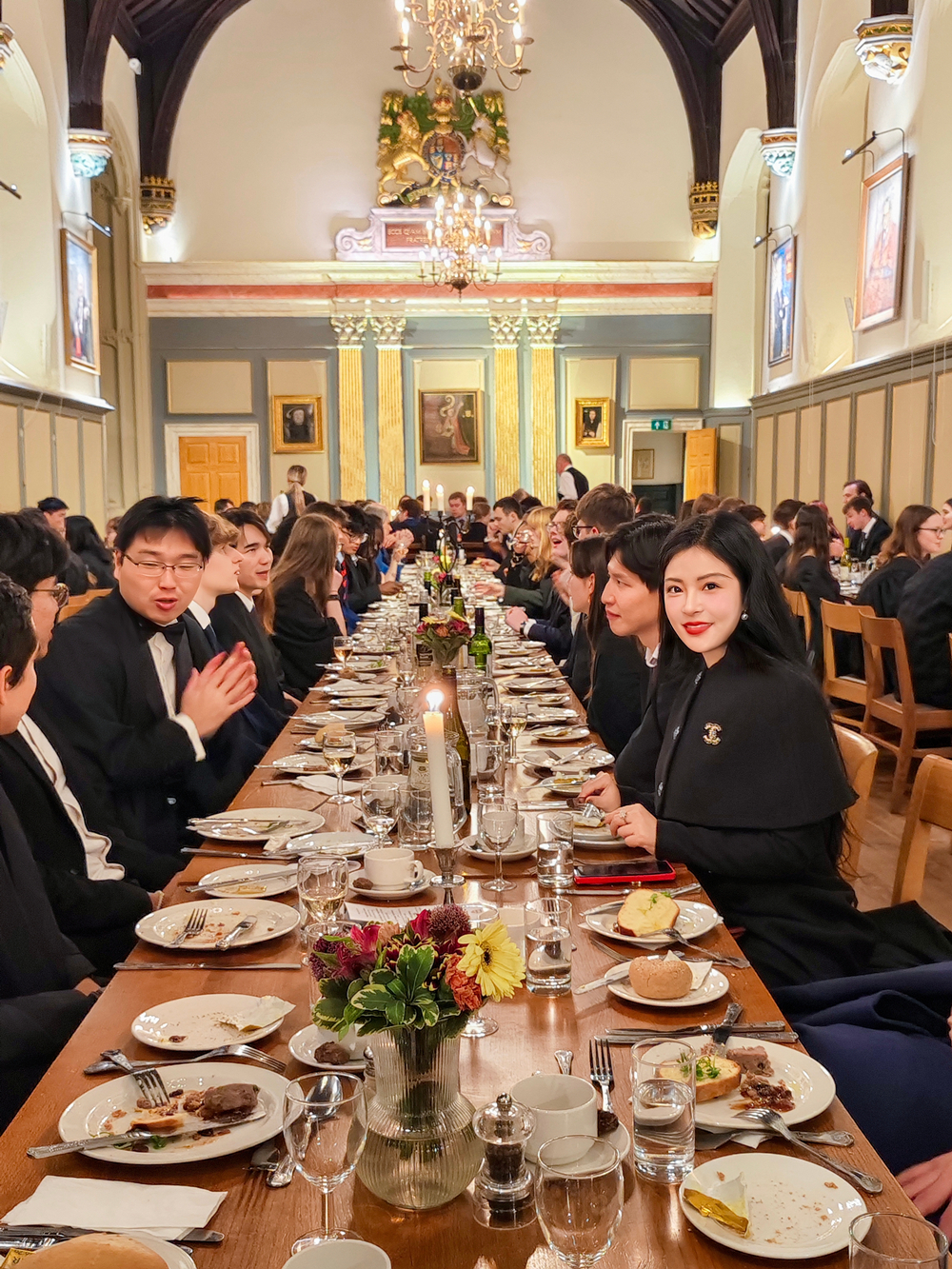 (图为显灵老师在剑桥大学读EMBA学习期间,与各国学者交流互动)