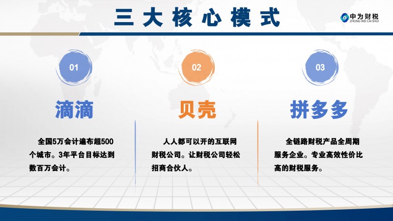 中为智能财税秉持“低成本、高效率、强保障”核心宗旨,以技术与模式创新推动行业变革,持续整合全国财税资源、完善服务体系,致力于打造全球领先的智能财税生态平台,让财税服务更简单、更高效、更普惠,彰显中国民族品牌的责任与担当,与所有参与者共享数字化转型红利。