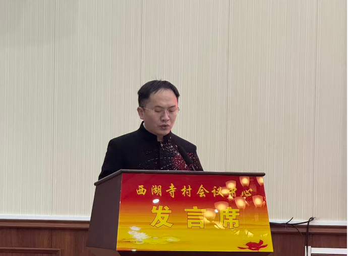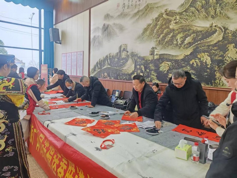 活动在激昂欢快的腰鼓表演中拉开序幕。铿锵有力的鼓点、灵动喜庆的舞姿,瞬间点燃现场热烈氛围。西湖寺村党总支书记、村委会主任张继光发表新春致辞,他表示,新春佳节既是万家团圆的美好时刻,也是传承优秀传统文化、凝聚乡村奋进力量的重要契机。举办此次活动,既是为了让写春联、贴福字等传统年俗重新回归群众生活,焕发时代生机;更是希望通过欢声笑语拉近干群距离,以互动共融增进乡情乡谊,让浓浓的“年味”不仅弥漫着墨香,更洋溢着温情。