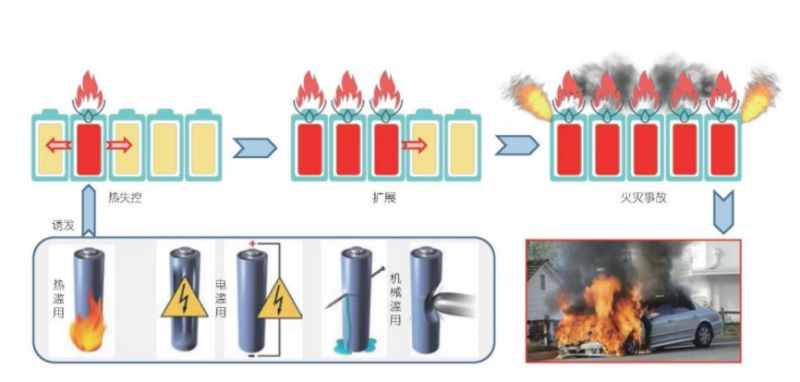 车辆碰撞后,车身结构变形挤压到电器元件、线路,先引发局部火情再蔓延至电池包
