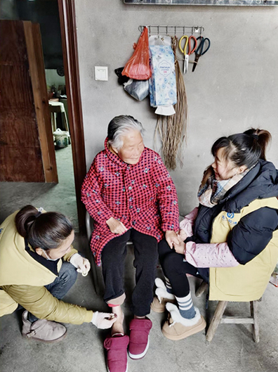 “卿氏姐妹”为老人做艾灸理疗