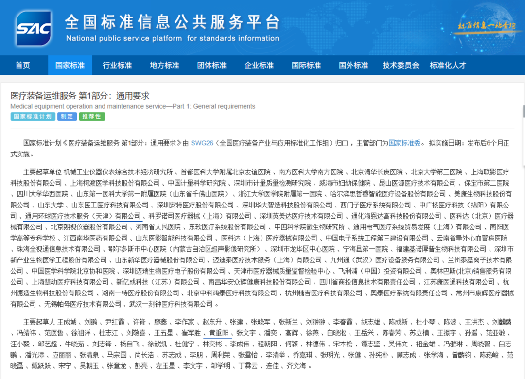 2025年12月,首个医疗装备运维服务国家标准发布,环球技服作为主要起草单位之一,为行业贡献“标准力量”