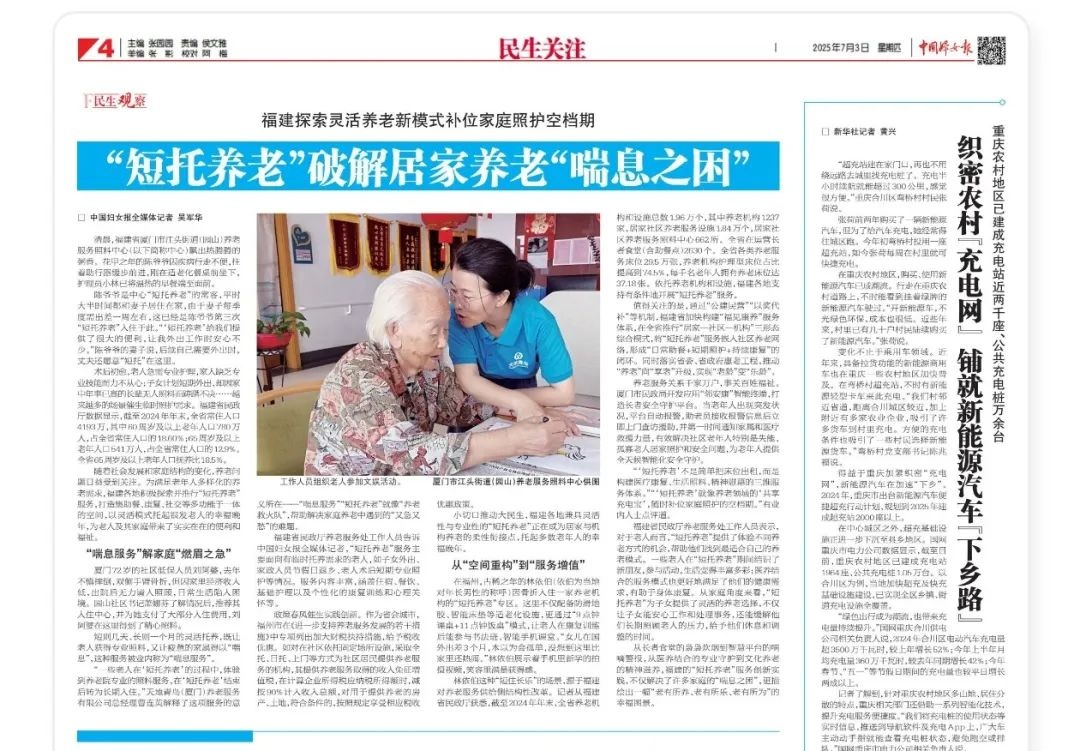 《中国妇女报》报道“短托养老”破解居家养老“喘息之困”