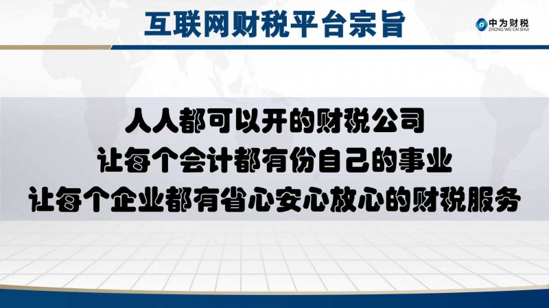 中为智能财税秉持“低成本、高效率、强保障”核心宗旨,以技术与模式创新推动行业变革,持续整合全国财税资源、完善服务体系,致力于打造全球领先的智能财税生态平台,让财税服务更简单、更高效、更普惠,彰显中国民族品牌的责任与担当,与所有参与者共享数字化转型红利。