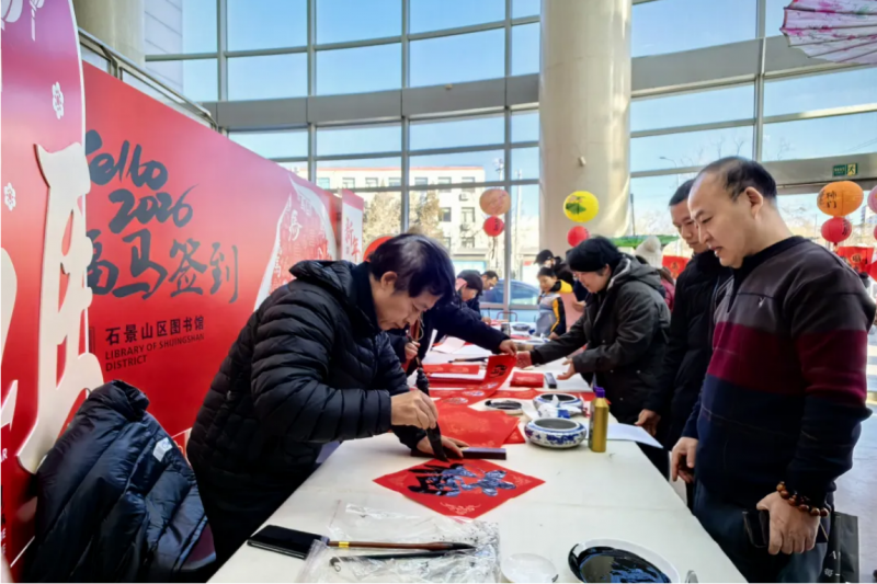 笔墨藏年味,书香贺新春!2月7日,石景山区图书馆第二十四届 “百副春联送读者” “阅动石景山,马上就出发” 贺岁雅集活动圆满落幕。一整天的热闹喧嚣、欢声笑语,为马年春节带来了浓浓的文化暖意,也让每一位到馆读者满载而归。