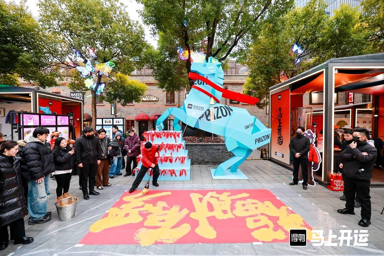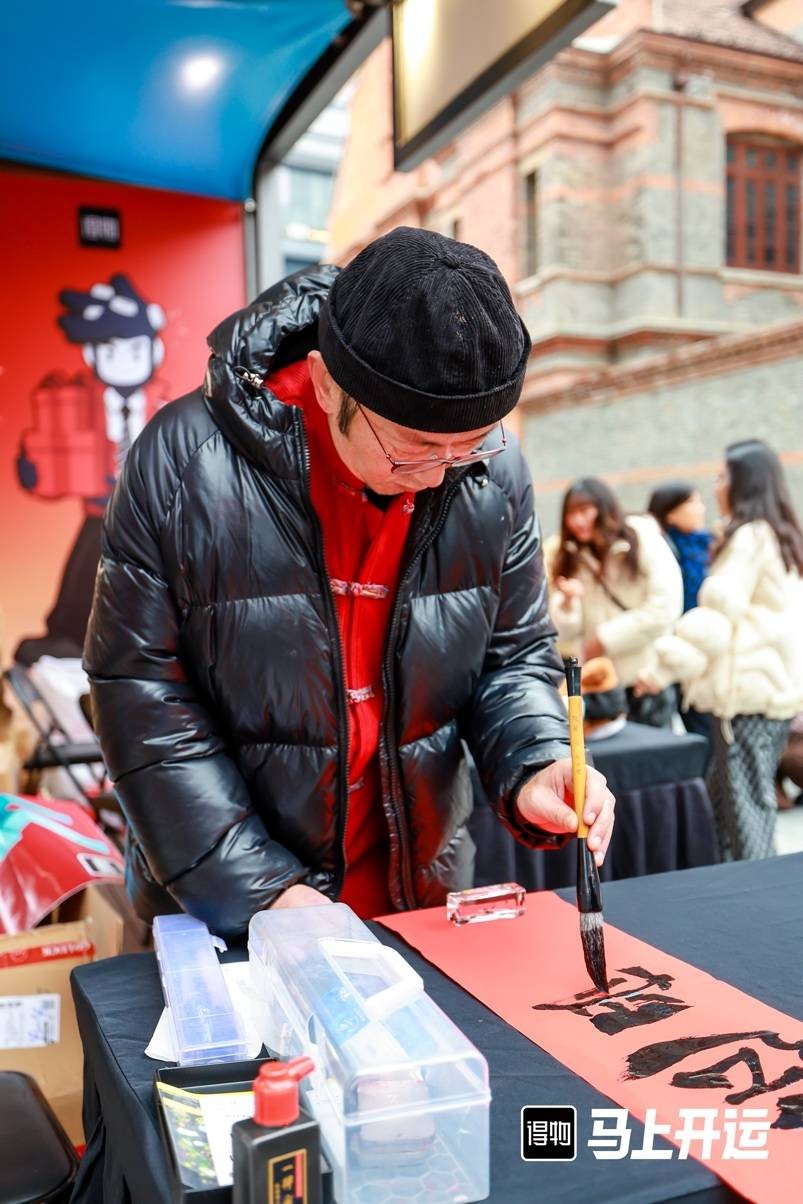 2026 年 1 月 31 日下午,上海虹口文化地标今潮 8 弄,一场融合传统年俗与现代潮流的城市文化事件正在上演。得物 App 于马年新春前夕打造“马上开运”新春潮流派对,国潮书法场景开创者、南门书法创始人朱敬一受邀亲临现场,饱蘸金色墨汁,在巨大的红纸上挥就“福财运爱”与“马上全有”八个苍劲有力的大字,瞬间点燃了现场年轻人群的打卡热潮 。