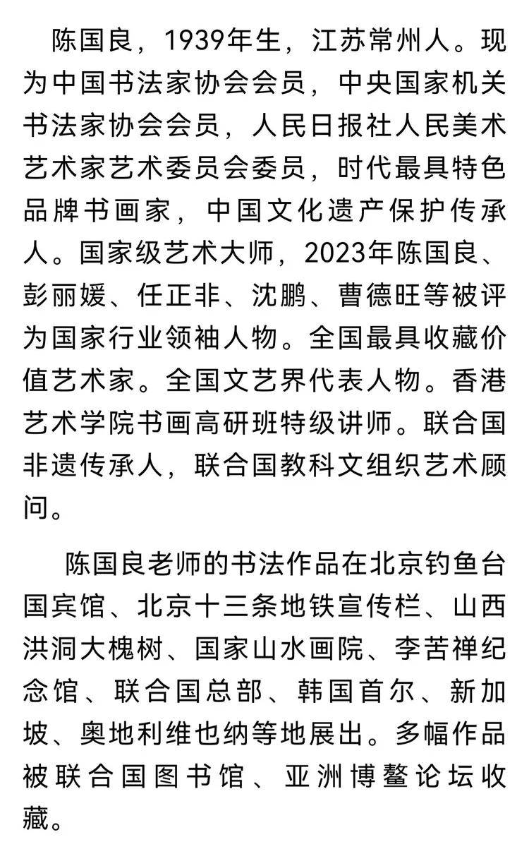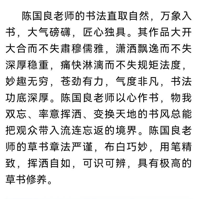 陈老师自幼翰墨,数十载砚田耕耘,将中华文化的深厚底蕴与书法艺术的独特魅力融于笔端。其书风或如蛟龙出海,笔走龙蛇间尽显豪放洒脱;或似和风拂柳,挥洒自如中蕴含温润雅致。每一笔、每一划,都是他对生命的感悟,对时代的礼赞。