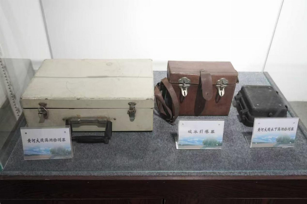 黄河大堤漏洞检测器,斑驳的金属箱体上,还留着当年治河人员反复开合的磨损印记。它是无数水利工作者守护安澜的“听诊器”,无声诉说着与黄河水患抗争的艰辛。破冰引爆器,棕红色的皮质外壳已经开裂,却依然能让人感受到在凌汛威胁下,先辈们以血肉之躯对抗自然的无畏与智慧。