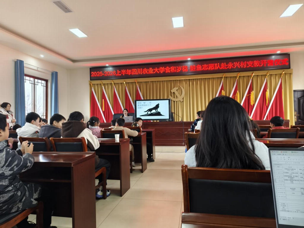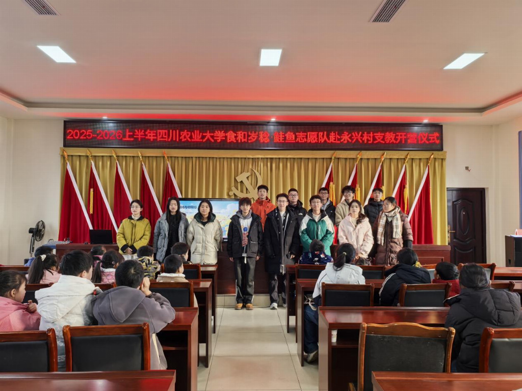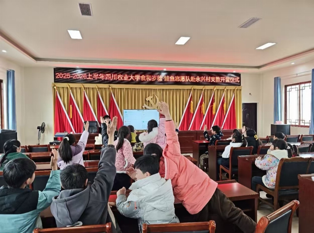 2026年1月31日,来自四川农业大学食品学院联合动物医学院鲑鱼队(以下简称鲑鱼队)支教团队的成员们从各地共赴四川省宜宾市翠屏区永兴镇永兴村。上午9点,开营仪式准时举行。现场热闹纷呈,孩子们眼中满是期待,盼望着与哥哥姐姐们共度一段充实又快乐的学习时光。