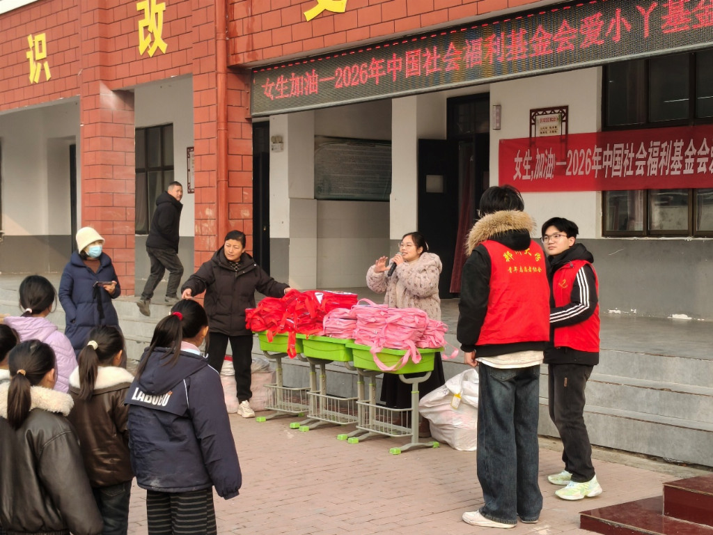 28日,“星火炽羽”实践队联合兰考三义寨人民政府,兰考“润无声”社会工作服务中心,走进兰考孟角、唐贾寨两所小学,开展“女生,加油——2026中国社会福利基金会爱小丫”物资捐赠活动并与“乐乐箱”积木游戏计划同步进行。他们为两所学校的女生们送去了精心准备的生活必需品,传递一份温暖的关怀。
