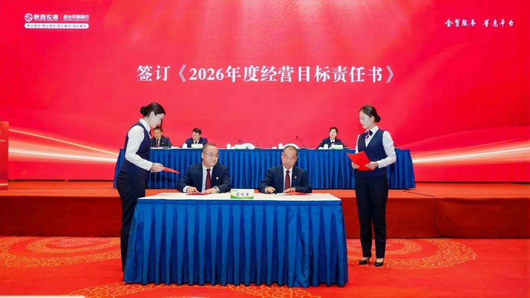营业部、卧龙寺支行、金河支行三家单位分别就综合经营管理、个贷营销与风险管控、党建引领与普惠金融服务作了经验交流发言。会上,签订了《2026年度经营目标责任书》,进一步压实工作责任,明确奋斗目标。