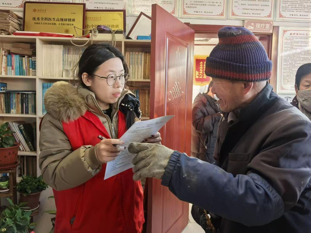志愿者主动用简洁易懂的语言和老年人沟通了解情况